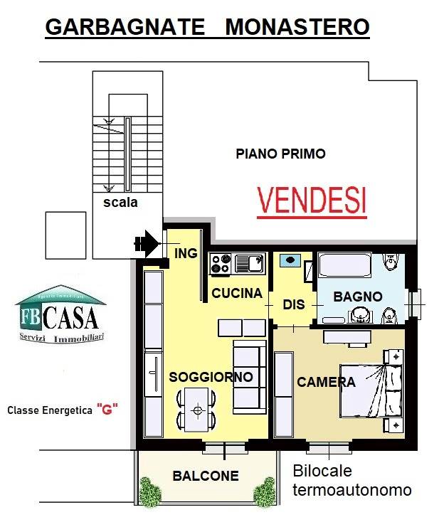 VENDESI - Appartamento di 2 locali, PIANO 1° (NO ASCENSORE) contesto di condominio piccolo molto tranquillo, curato ben abitato. La suddivisione interna dell'appartamento e distribuita da: Ingresso, soggiorno/pranzo/cuicina e balcone , vista aperta, Bagno con vasca, disimpegno, camera matrimoniale, comoda cantina e box. RISCALDAMENTO AUTONOMO SPESE CONDOMINIALI BASSE.