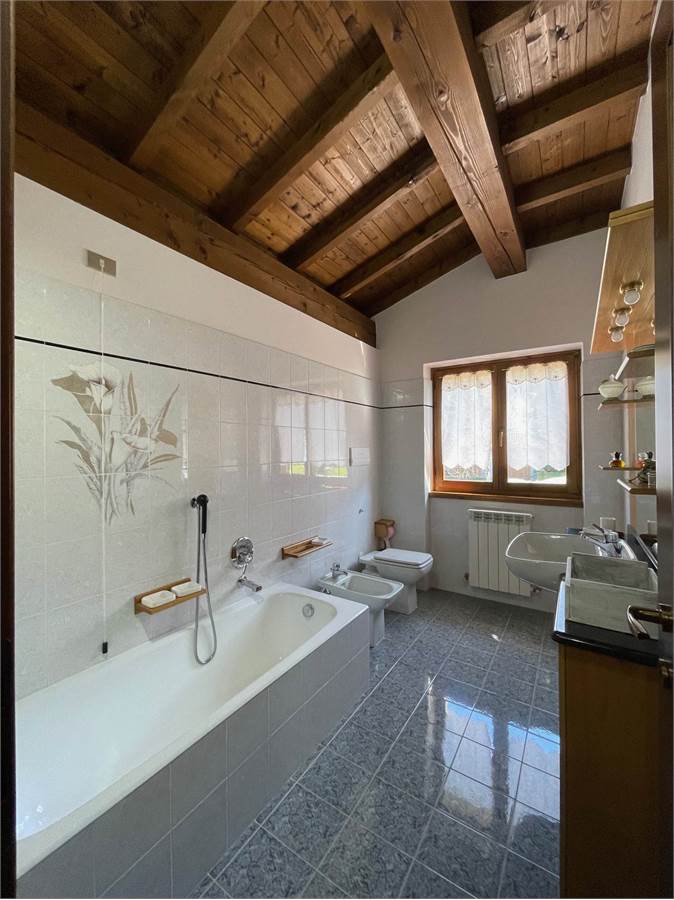 ZONA GIORNO: L'ingresso si apre su un accogliente soggiorno con camino, ideale per le serate invernali e una cucina abitabile separata. E’ presente un bagno degli ospiti. Il porticato esterno, perfetto per pranzi all'aperto, si affaccia sul giardino privato con una vista mozzafiato sulla vallata. Qui troviamo anche un attrezzato angolo barbecue ideale per grigliate in compagnia godendosi il panorama e l'aria pura.
