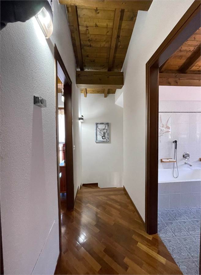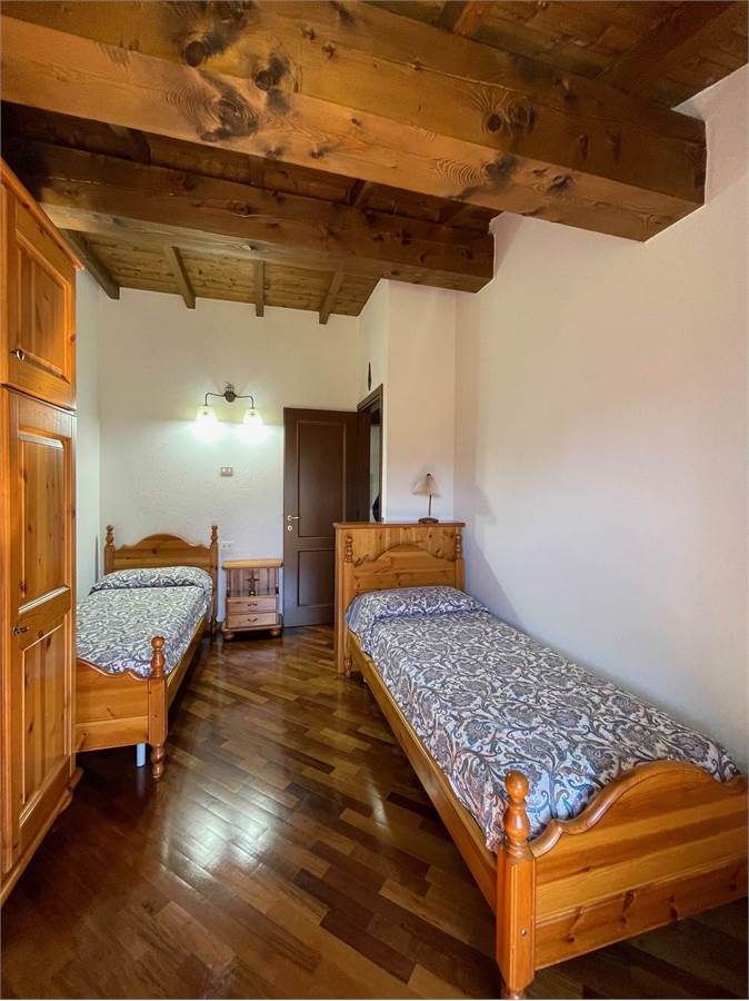 ZONA NOTTE: Una calda scala in legno conduce al piano superiore dove si trovano la camera matrimoniale, due camere singole e il bagno padronale. Completa il piano una splendida terrazza panoramica.